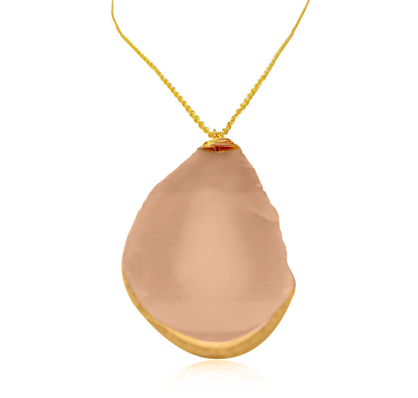 Gray agate pendant on an adjustable gold chain. Genuine polished agate in teardrop shape, this shade of gray goes with all colors. Stone pendant measures 3 inches x 1.75 inches. Maximum chain length is 33 inches.
